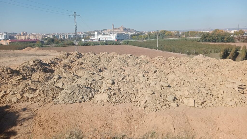 Tones d’àrids han estat abocades a una finca prop del carrer Palauet de la Bordeta. El material, que fa mala imatge, prové de la nova bassa d’aigua habilitada a Torre Salses.