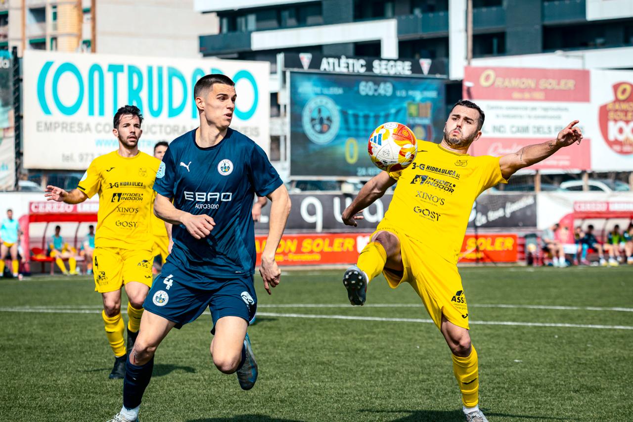 El segon temps va arrencar amb l’entrada de Cobo al lateral esquerre. En el 57 el tècnic Jordi López va fer entrar Quim Utgés al davant per Bilal. Utgés va veure groga per una entrada en la qual, paradoxalment, l’Atlètic va demanar penal al davanter just al límit de la frontal de l’àrea.