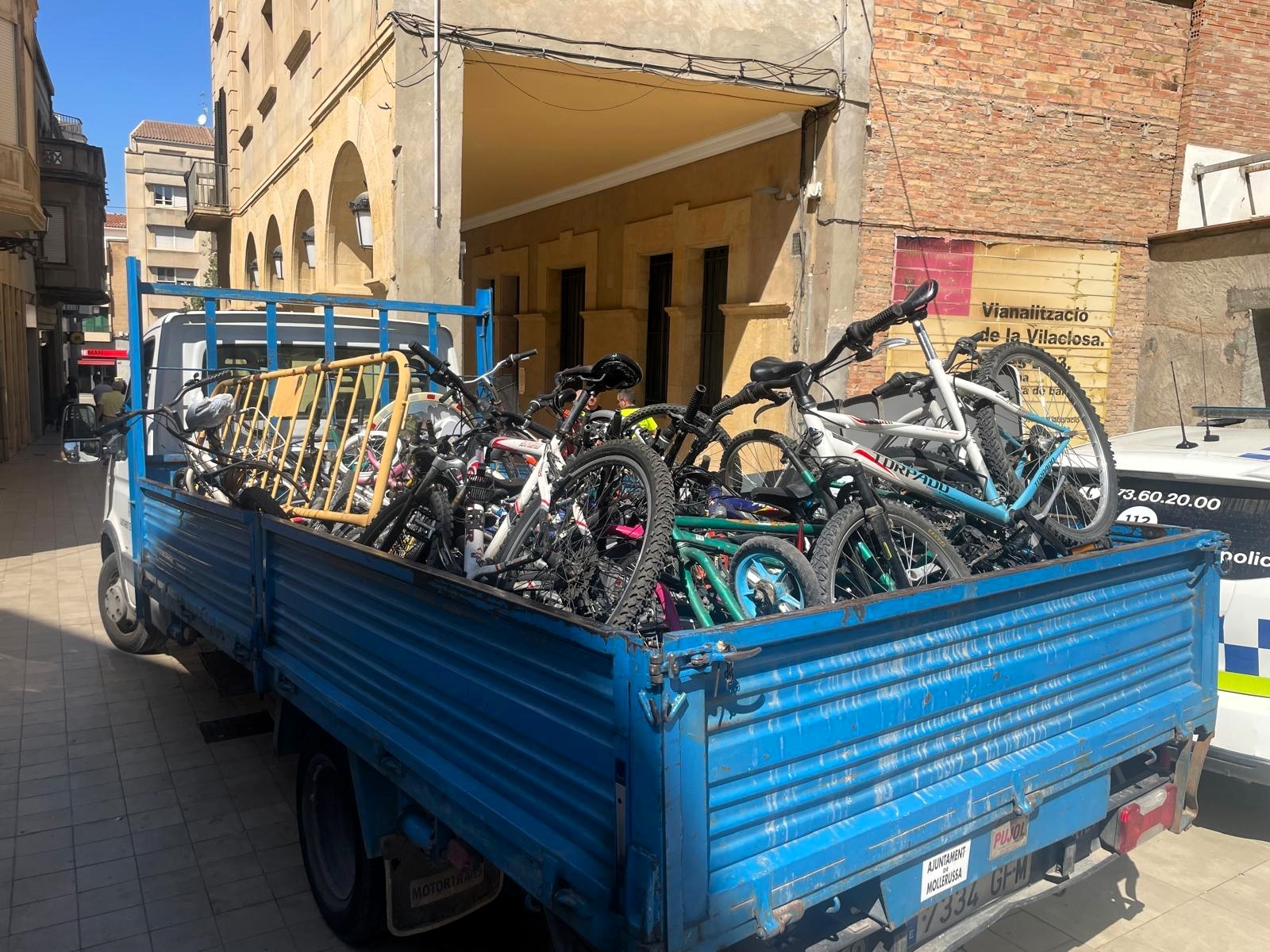 La Policia Local de Mollerussa i la brigada municipal retiren una trentena de bicicletes abandonades de la via pública