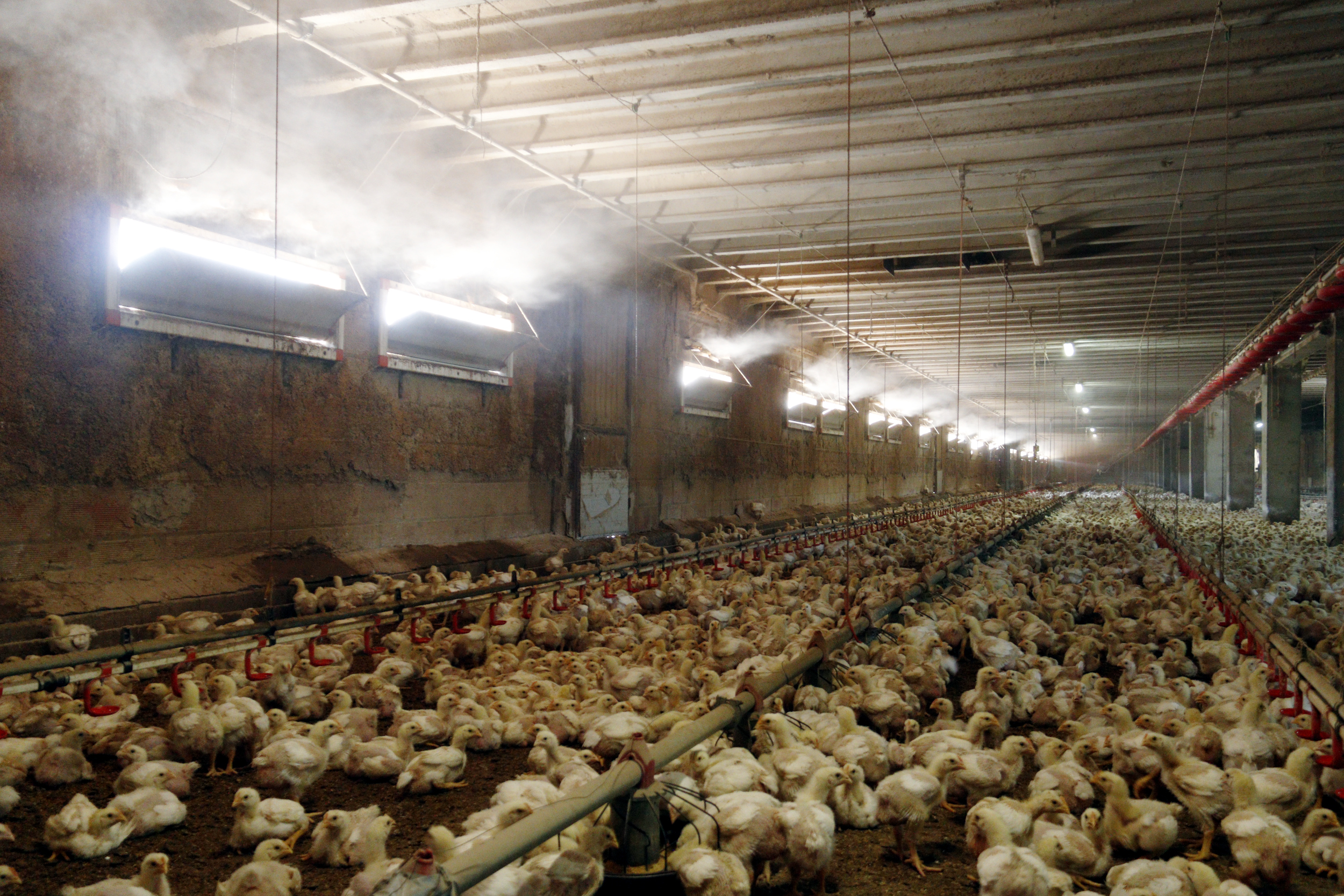 Les granges de pollastres combaten les altes temperatures amb humidificadors i sistemes de refrigeració de l’aire