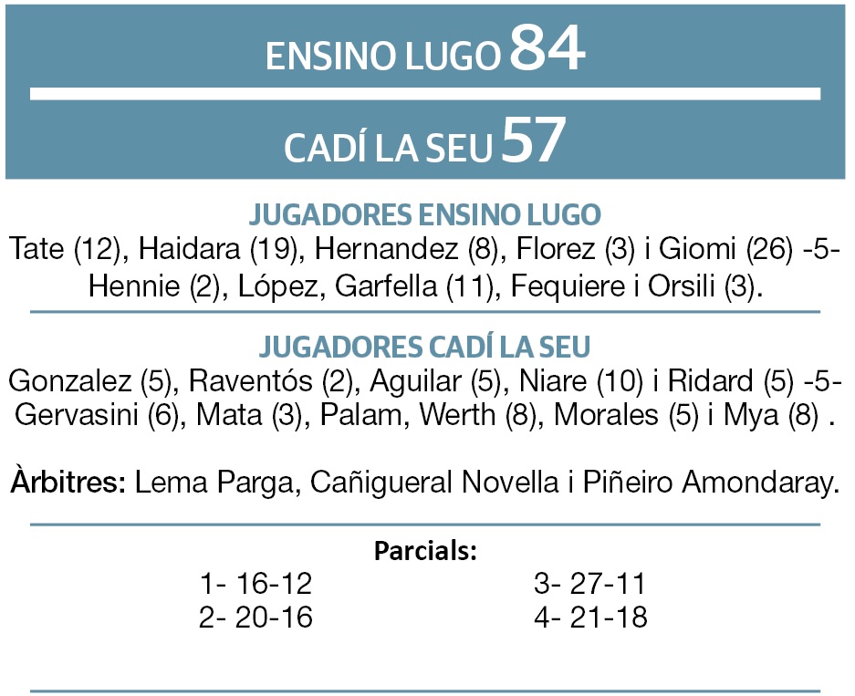 La tornada dels vestidors va penalitzar l’equip urgellenc, que va veure com l’Ensino situava un 60-39 al marcador. El partit es va resoldre 84-57. L’Ensino mira a la Copa i el Cadí s’allunya.