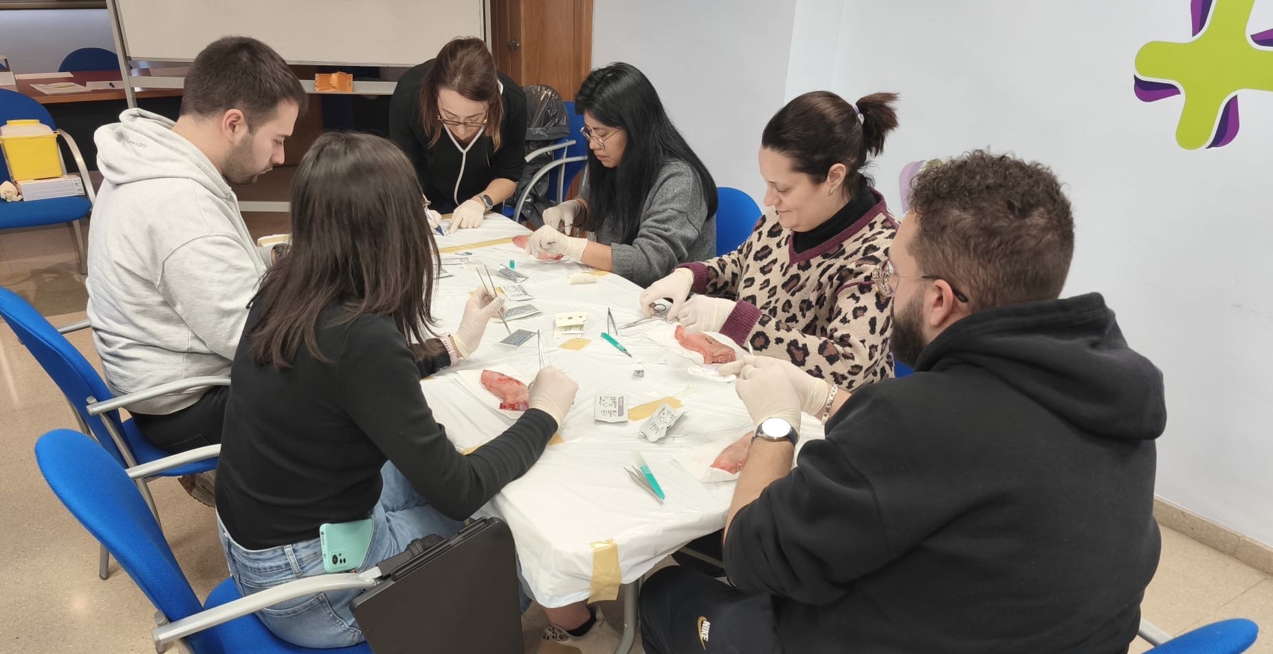 El Col·legi Oficial d’Infermeres i Infermers de Lleida (COILL) imparteix durant el dia d’avui un taller de sutures per infermeres i infermers que exerceixen en qualsevol àmbit. La formació en aquest procediment quirúrgic habitual, tant en atenció d’urgència com en els centres d’atenció primària, la realitzen els diplomats en infermeria Gemma Amat i Álvaro Vilela que han volgut centrar-se a transmetre com tractar les ferides per afavorir l’òptima cicatrització.
