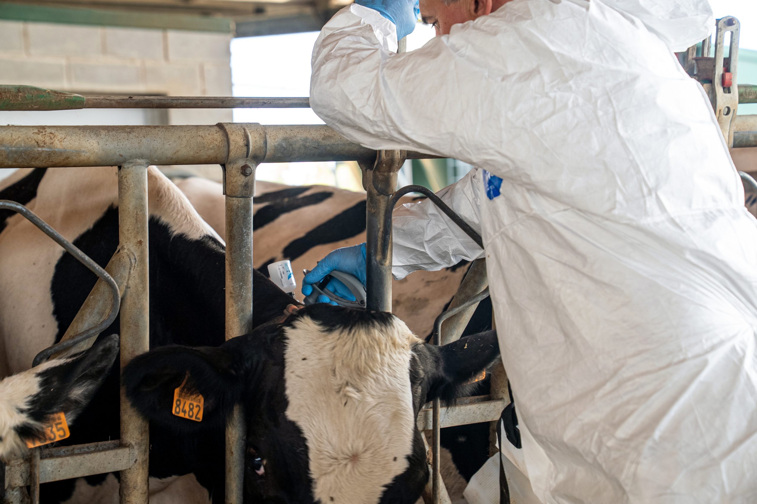 Un veterinari vacunant contra la dermatosi en una granja