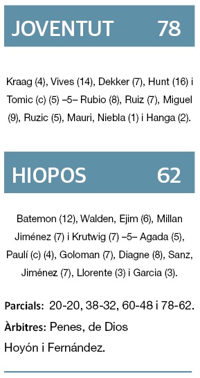 L’equip lleidatà, malgrat tot, mai abaixa els braços i en els primers cinc minuts del darrer quart intentava acostar-se en el marcador. Ricky Rubio dirigia els seus amb mestratge i en l’altra cistella Diagne demostrava potència física a favor del Hiopos. Amb 68-53 (màxim avantatge favorable als badalonins), Caleb Agada va cometre falta en atac sobre el base del Masnou. Van tornar Batemon i Krutwig a la pista per part del conjunt de la capital del Segrià, però Batemon no estava encertat des de la línia de tres en el tram final i el Joventut s’escapava (74-55) després d’un triple de Vives a favor de la Penya. Batemon va respondre amb un altre triple, però el Joventut continuava lluny.