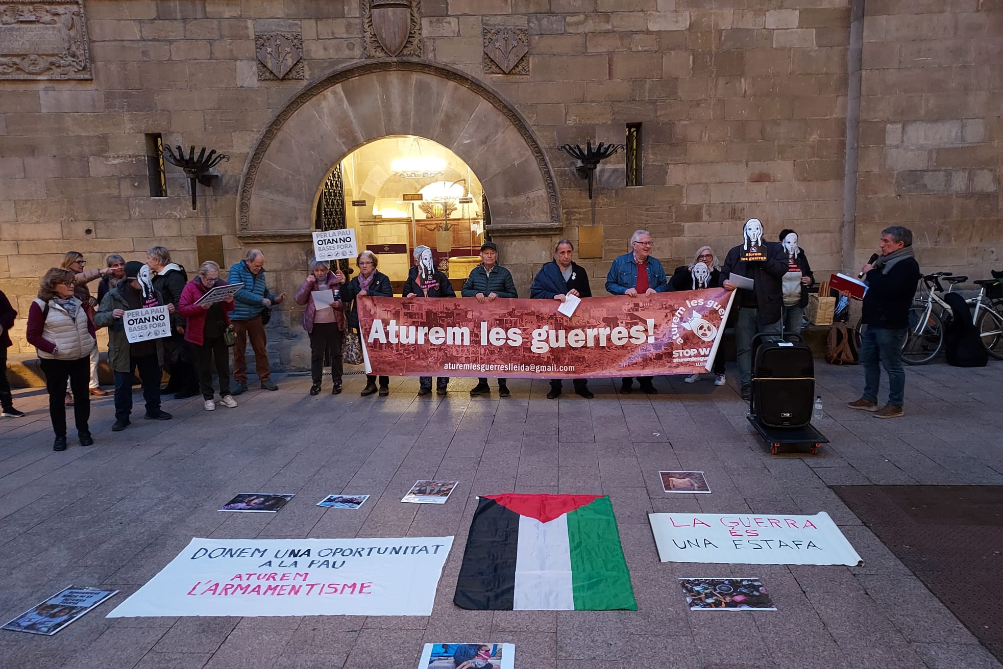 FOTO_ J.M. Currià Concentració ahir al vespre davant la Paeria de Lleida per mostrar el rebuig a les guerres