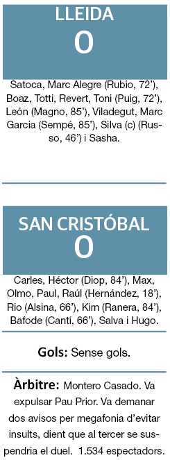 En el 83 van arribar els darrers canvis dels egarencs i en el 85 els del Lleida. El San Cristóbal va perdre temps durant els cinc minuts de descompte i es va escapar el triomf.