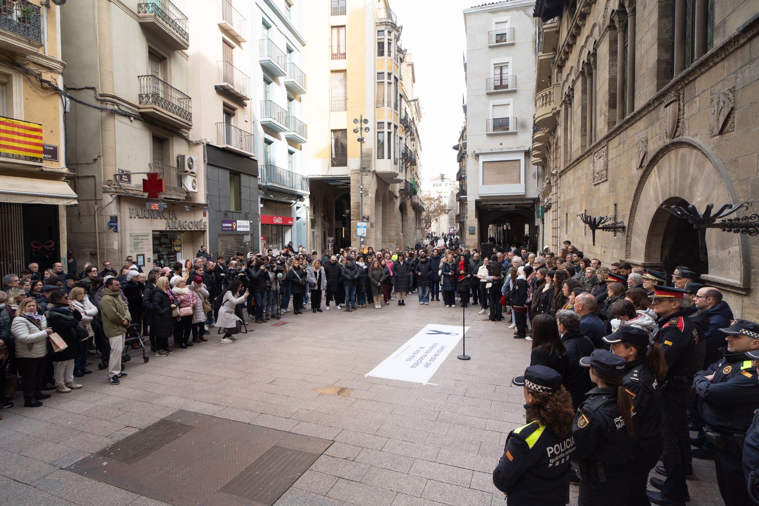 Mentrestant, desenes de ciutadans es van aplegar ahir al migdia a la plaça Paeria per condemnar amb un minut de silenci el crim. La corporació municipal encapçalada per l’alcalde Fèlix Larrosa i la consellera d’Igualtat i Feminismes, Eva Menor, van presidir l’acte en què també hi eren presents fills i nombrosos familiars i amistats de la víctima que van seguir el minut de silenci visiblement afectats. Es va desplegar una pancarta on es podia llegir ‘Lleida de dol per violència masclista. Ni una més’.