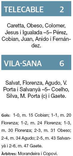 L’encontre va entrar en una fase d’estabilitat i van passar força minuts, fins que, en el 43’, la jove Elsa Salvanyà va veure porteria i va anotar el 2-5.