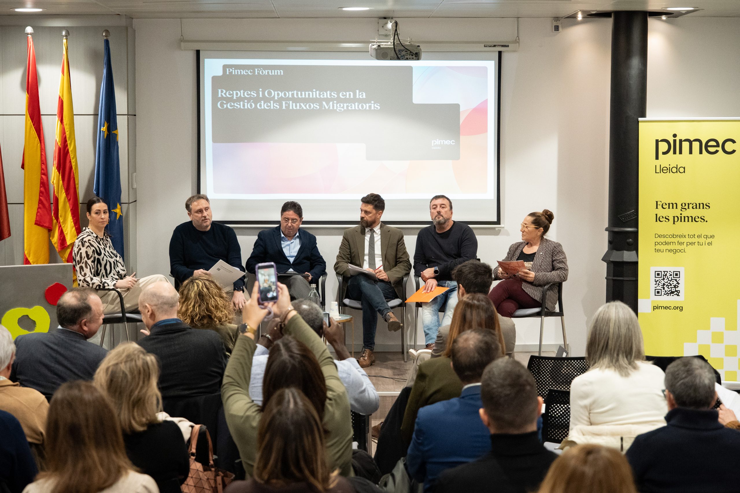 Durant la jornada, el segon tinent d’alcaldia de la Paeria de Lleida, Carlos Enjuanes, va assenyalar que el padró recull que el 18,76% de la població de la ciutat, 27.000 persones, té més de 65 anys i que les previsions indiquen que aquest percentatge s’enfilarà fins a un 22 o 28% d’aquí a deu anys. “L’augment del nombre de persones grans o amb dependència genera un espai d’ocupació i integració per a persones migrades”, va afirmar. A Catalunya el pes de la mà d’obra estrangera també és molt elevat en sectors com l’agricultura, on acaparen el 70% de l’ocupació, o l’hostaleria, on representen el 36% dels treballadors. “La població nouvinguda és imprescindible per a la continuïtat de les empreses”, va defensar el president de Pimec Lleida, Borja Solans. En el cas de l’agricultura els empresaris es mostren expectants davant els avenços normatius sobre la migració circular, és a dir, aquells acords que permeten la contractació de treballadors en origen per un període de màxim de nou mesos, amb la condició que després retornin al seu país.