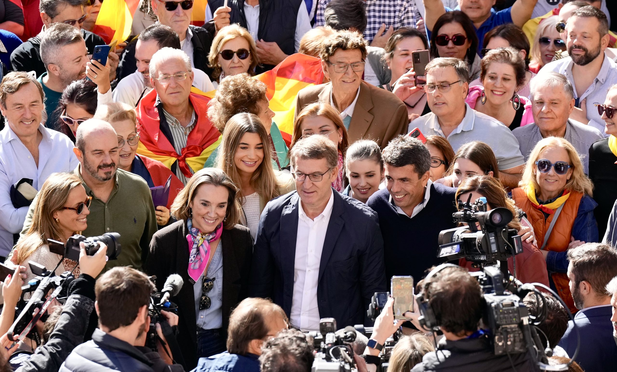 El president del PP, Alberto Núñez Feijóo, va continuar ahir amb la seva oposició frontal a la llei d’amnistia i va prometre lluita “als carrers, als ajuntaments i a les institucions”. “No ens quedarem quiets i no ens callaran, això és un disbarat democràtic”, va afirmar Feijóo aquest diumenge en un acte multitudinari del PP a València contra la futura llei on es van escoltar càntics de ‘Pedro Sánchez, a presó’.