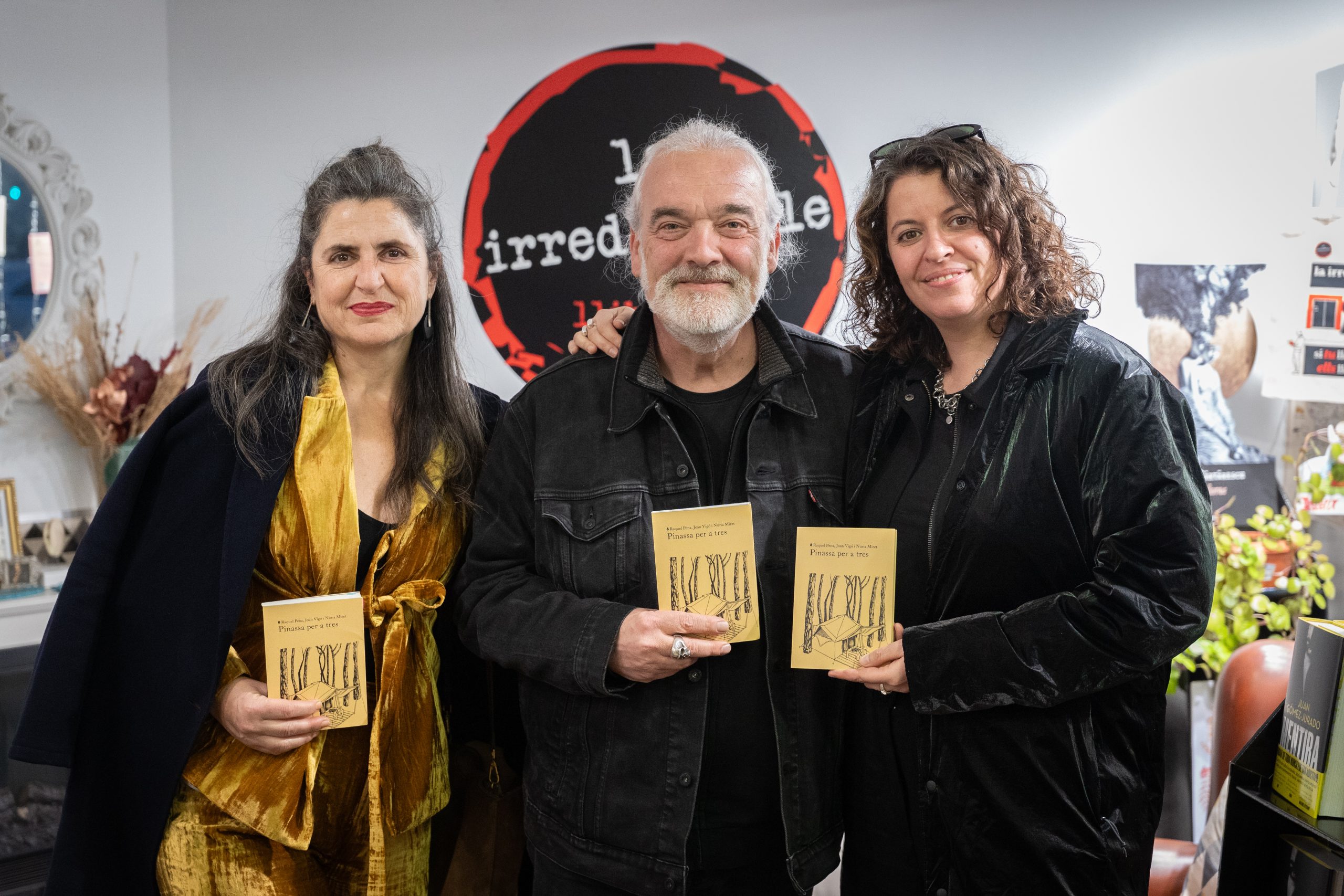La llibreria la Irreductible va acollir ahir la presentació de ‘Pinassa per a tres’ (LaBreu Edicions), un llibre de relats de l’escriptora, il·lustradora i actriu lleidatana Núria Miret, l’escriptor Joan Vigó i l’assagista Raquel Pena, que van compartir la vetllada literària amb l’editora Ester Andorrà i Anton Not.