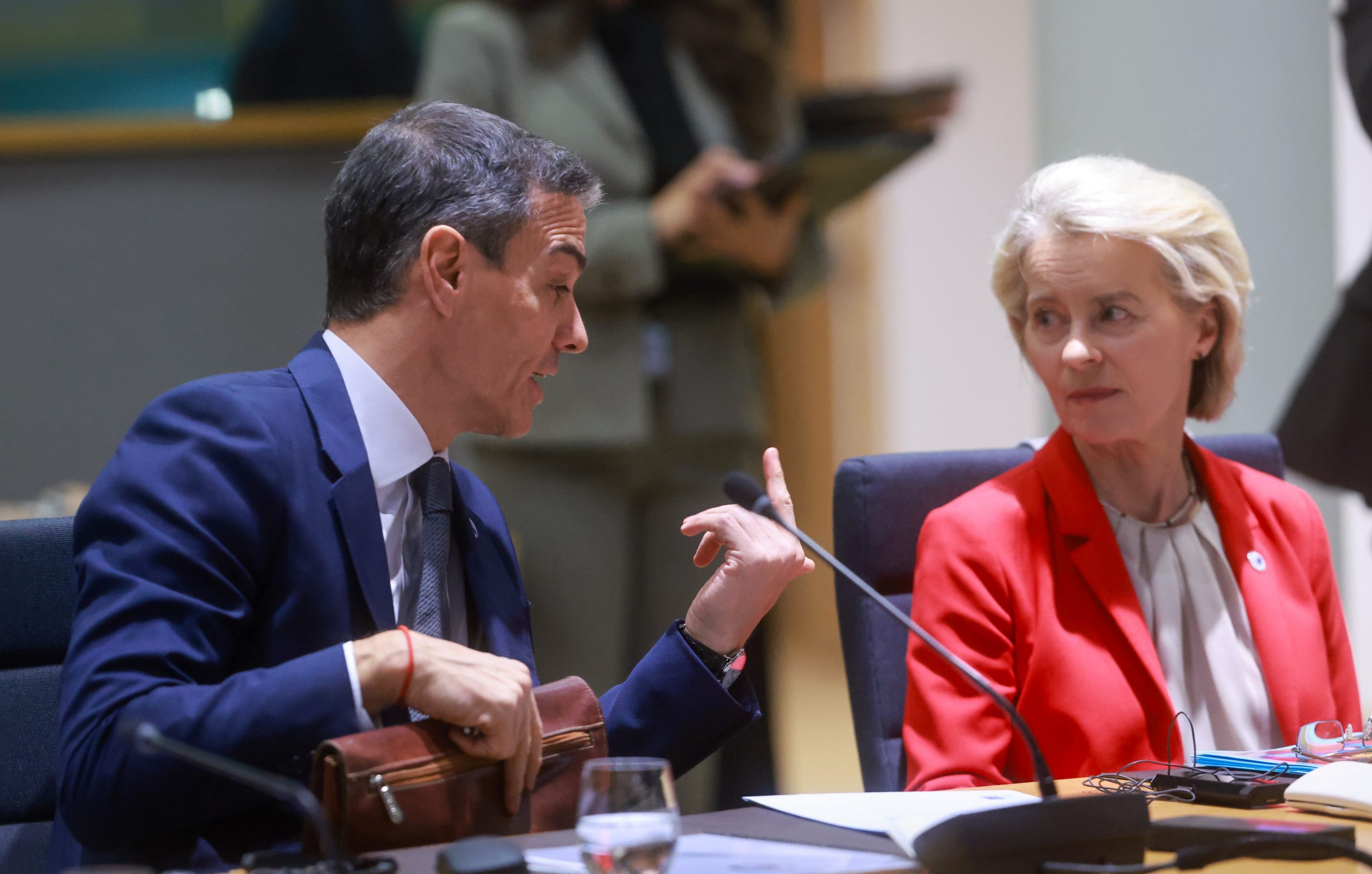 FOTO_ Olivier Hoslet (EFE) Pedro Sánchez conversa amb Von der Leyen durant la reunió de la CE
