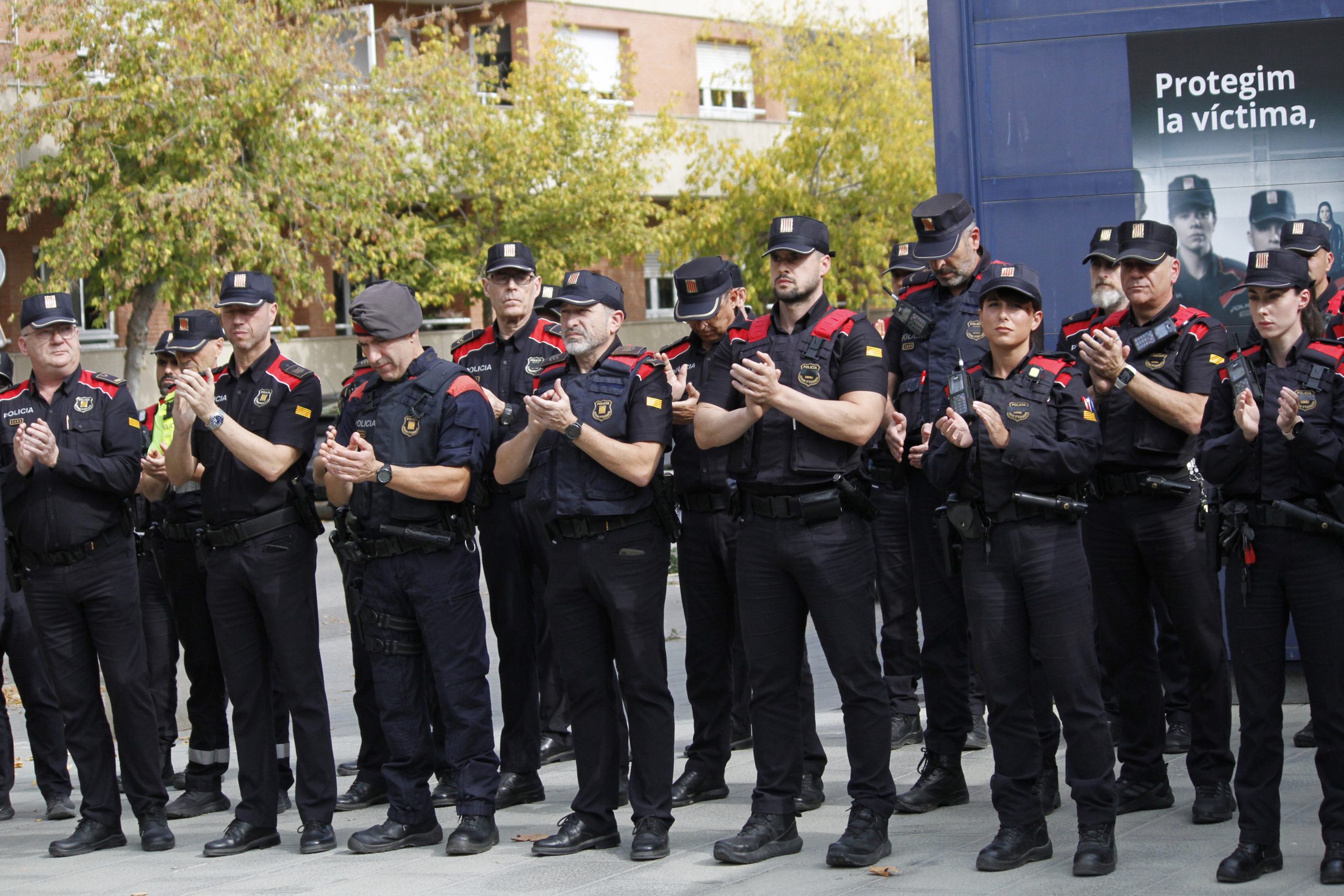 Un centenar de persones es van concentrar ahir al migdia a l’exterior de la comissaria dels Mossos d’Esquadra de Mollerussa en record de l’agent Víctor S. que va ser assassinat a trets pel seu sogre dimecres a la tarda al carrer Doctora Castells de Lleida. El mosso, que feia 21 anys que estava al cos, estava destinat actualment a l’Oficina d’Atenció a la Ciutadania (OAC) de l’ABP Pla d’Urgell-Garrigues. A més, uns altres cent policies i efectius de la Guàrdia Urbana van participar en el minut de silenci a la comissaria de Lleida. Ambdós equipaments tenien les banderes a mig pal.