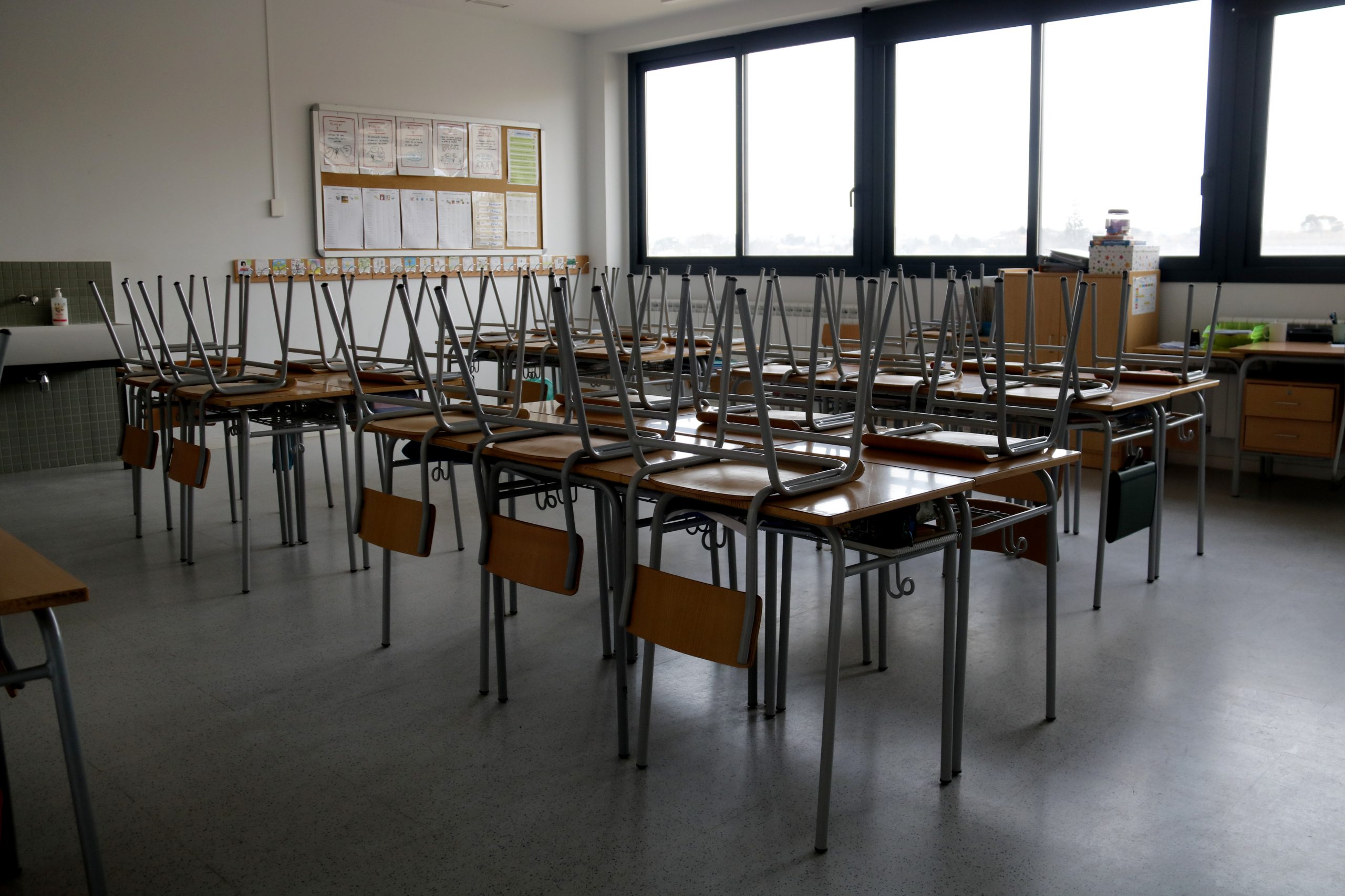 Una aula buida per la vaga de docents a l'escola Minerva de Lleida