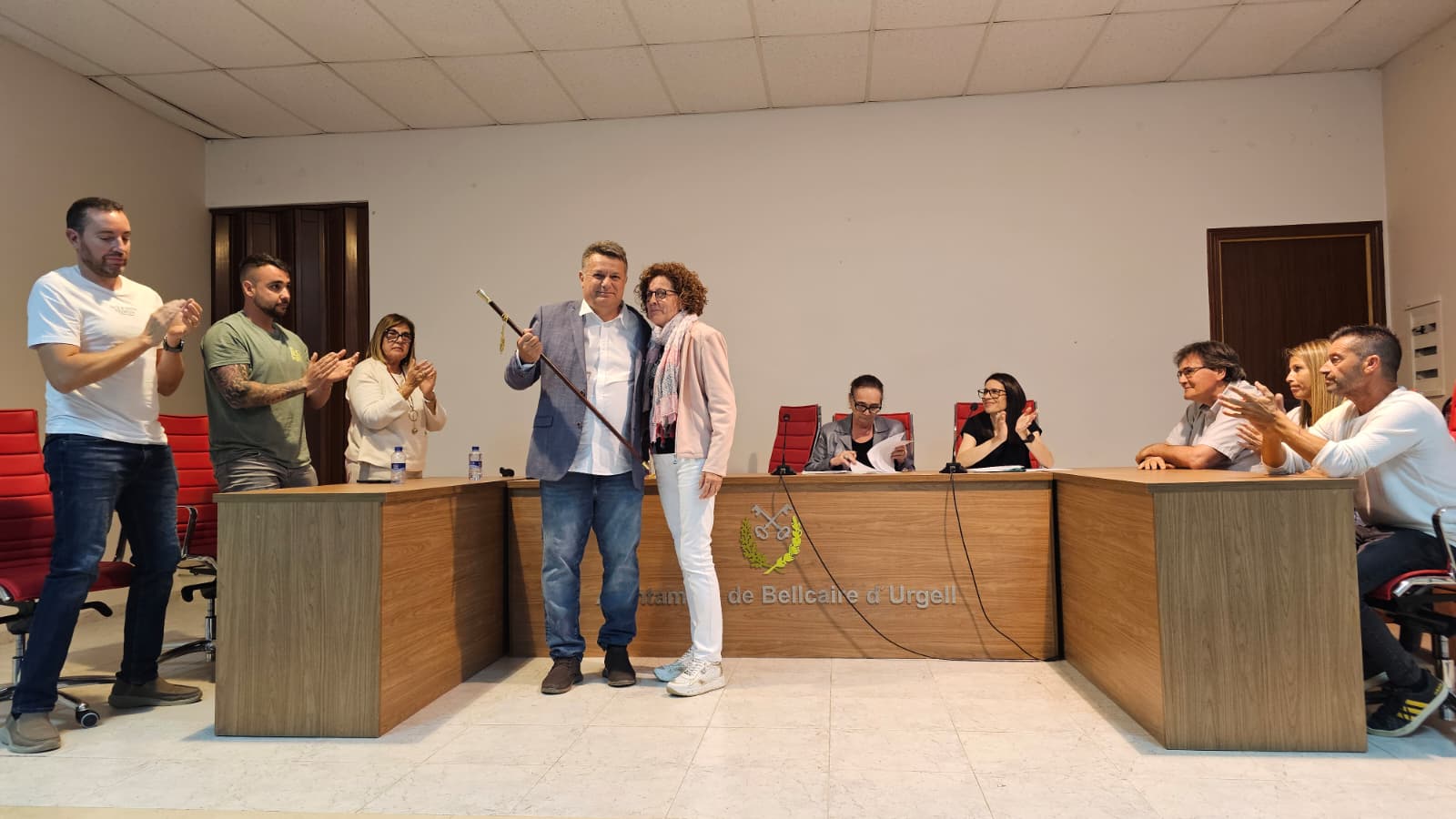 Bellcaire d’Urgell va viure ahir un ple extraordinari especialment amb l’elecció de Llorenç Llop com a nou alcalde del municipi, en substitució del recentment traspassat, Jaume Montfort. Veí del municipi, de 54 anys, Llop va ser cap de l’oposició al consistori del 205 al 2019 i regidor al costat de Montfort des de l’any 2023. La sessió, celebrada a la sala d’actes de l’Ajuntament, també va servir per formalitzar la presa de possessió de Marc Darbra com a nou regidor del consistori pel grup municipal d’Esquerra Republicana. Un dels moments més emotius i colpidors va ser el lliurament de la vara d’alcalde per part d’Antonia Pau, vídua de Jaume Monfort. L’alcalde accidental sortint, Jofre de Juan, va voler destacar la figura i el llegat del seu predecessor, qui va definir com “una persona que estimava Bellcaire per damunt de tot i que sabia escoltar, sumar i posar sempre la gent al centre”. Llop va assumir el càrrec amb un discurs de compromís i responsabilitat, “amb molta humilitat i determinació i amb la voluntat de treballar cada dia per Bellcaire”. El nou alcalde va dir que “tenim un projecte de poble sòlid i volem avançar amb empenta i il·lusió”.