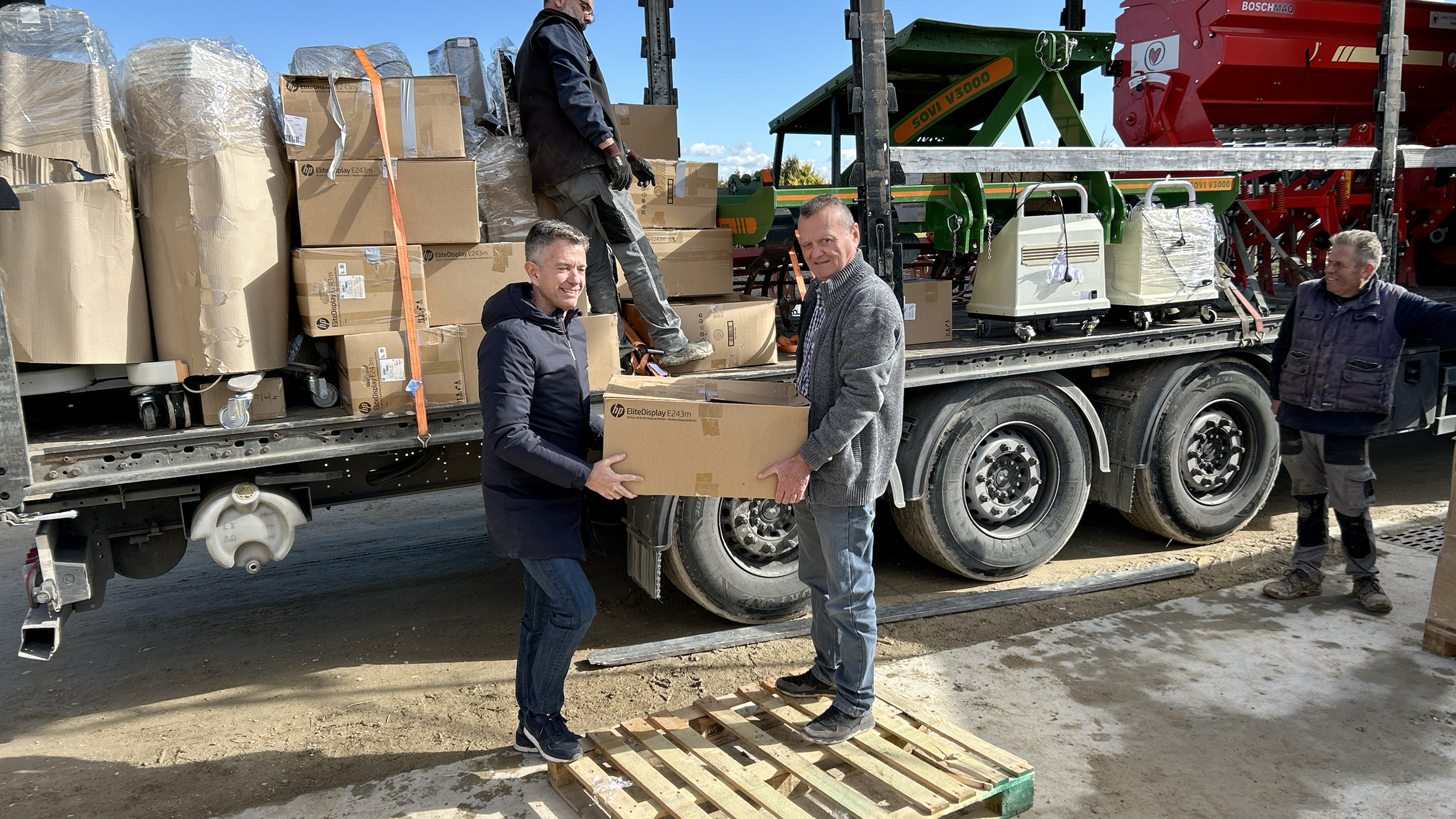 La càrrega inclou maquinària agrícola —un tractor, una sembradora i un recol·lector de patates— que permetrà posar en marxa un projecte de millora genètica de les vaques autòctones orientat a incrementar la producció de llet. La iniciativa, que es desplegarà sobre el terreny amb la col·laboració de la Fundació IPADE, va estretament lligada a la millora de la productivitat dels farratges, base alimentària del bestiar.