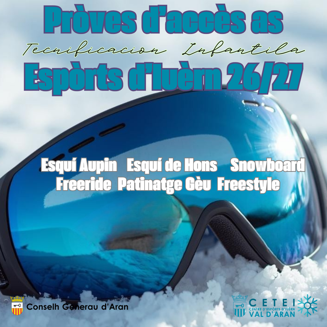 El Conselh Generau d’Aran, a través del seu Departament d’Esports i del projecte CETEI (Centre Especialitzat en Tecnificació d’Esports d’Hivern), anuncia l’obertura de les proves d’accés al Programa de Tecnificació Infantil d’Esports d’Hivern per a la temporada 2026/2027.