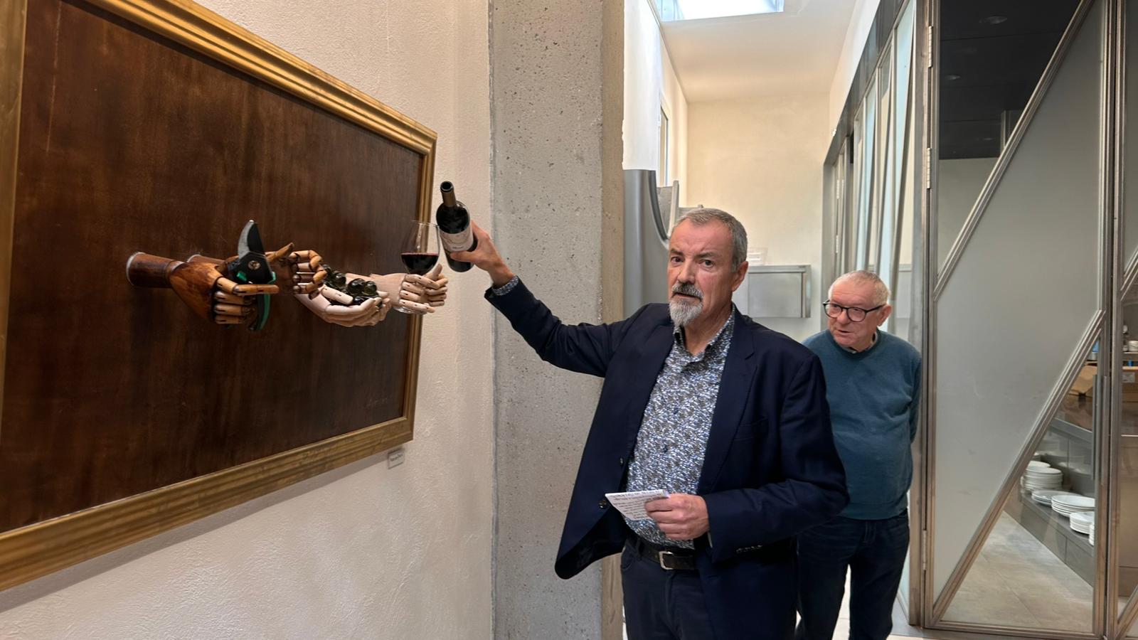 Ermengol, que actualment continua fent vinyetes humorístiques i iròniques per LA MAÑANA i pel diari digital Núvol, presenta 18 peces que van més enllà de la imaginació perquè naix d’una peça presentada a ‘Collita 58’, una exposició del 2024 i que avui, part d’aquesta torna a cobrar vida. La peça de la qual parteix és unes ulleres fetes amb copes de cava i la gran coincidència “és que el personal de l’òptica van veure-ho i em van demanar una exposició que jo ja tenia encaminada, i que, per tant, encaixa perfectament”.