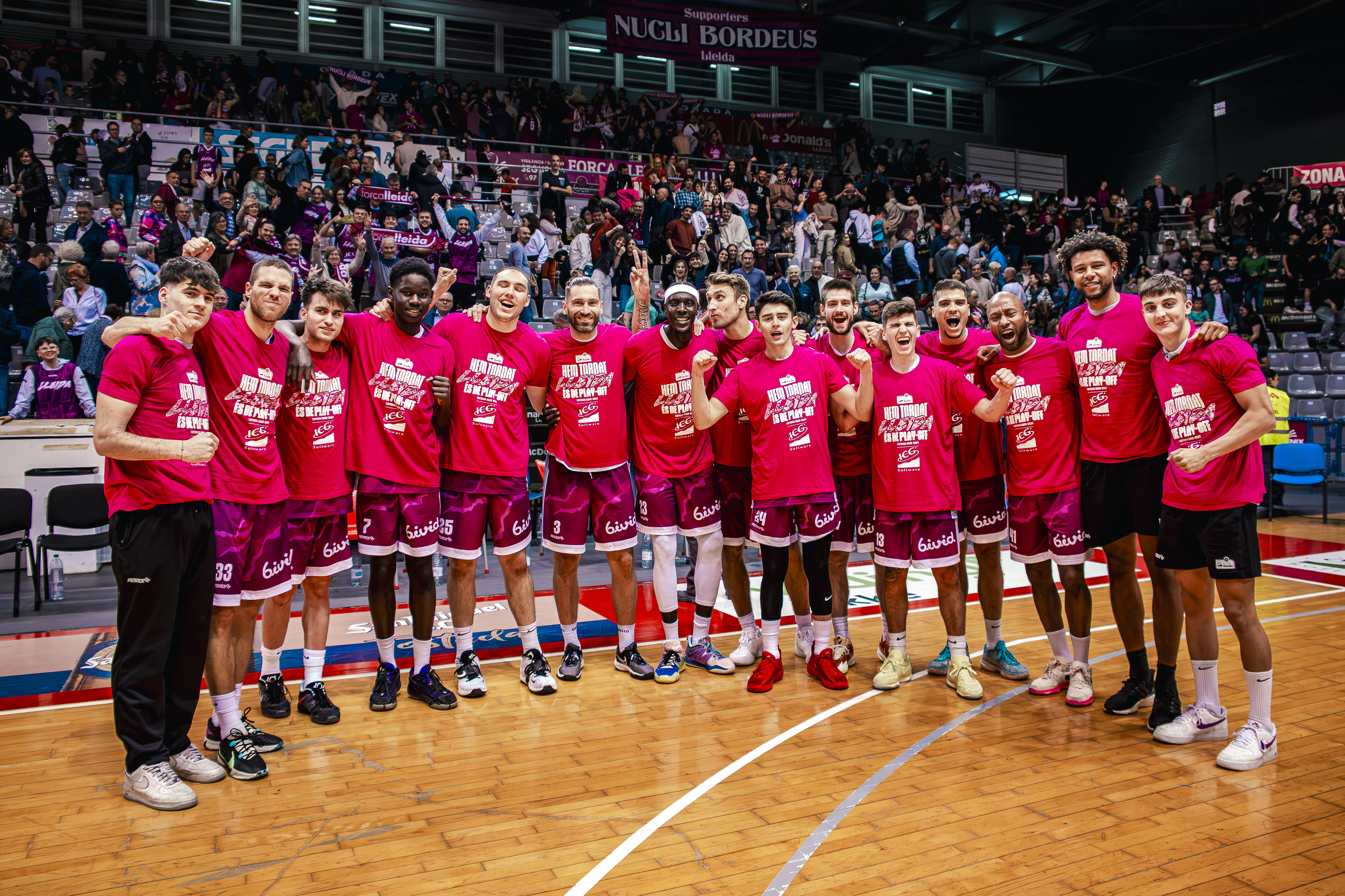 FOTO_ Pol Puertas Els jugadors de l’ICG posen amb la samarreta de la classificació al play-off d’ascens a l’ACB