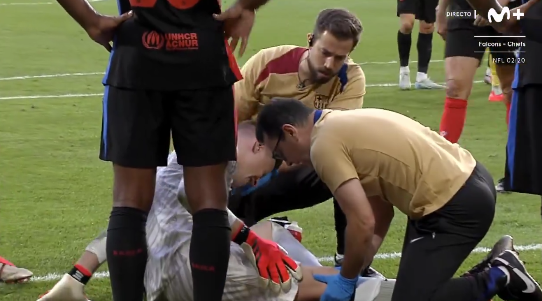 El porter alemany es va lesionar al final de la primera part del partit davant el Vila-real (1-5). Ter Stegen va haver d’abandonar el terreny de joc en llitera just abans del descans després d’una jugada en la qual va intentar caçar una pilota aèria i va trepitjar malament en la caiguda.