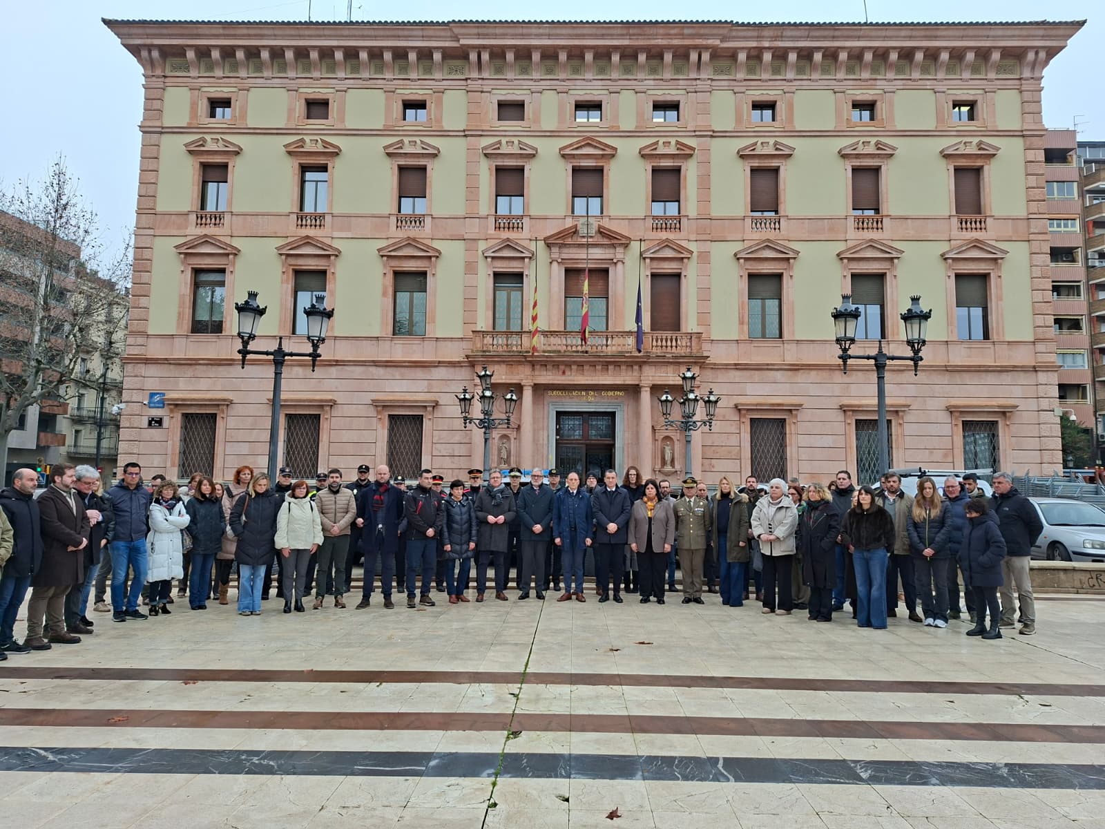 Els polítics lleidatans durant el minut de silenci davant la Subdelegació / FOTO: Subdelegació del Govern