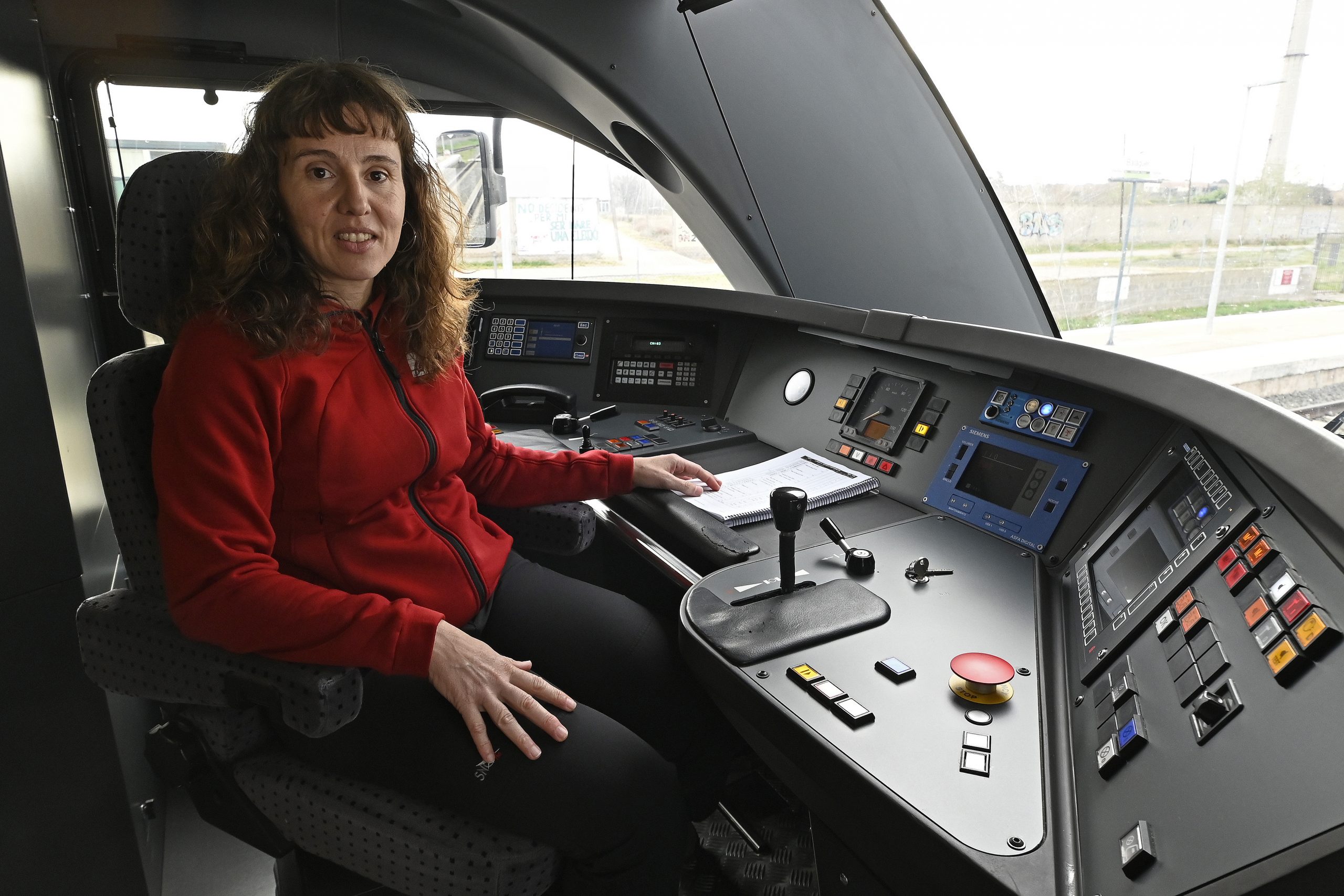 “He viscut amb normalitat total el fet de ser dona i conduir un tren”, explica Maitane Eceiza. Com molta gent que treballa en aquest ofici no prové del món ferroviari. Quan va entrar a treballar a Ferrocarrils feia d’altres tasques fins que li van oferir fer el curs de conductora de tren (a ella i a altres persones que ja formaven part de l’empresa). En aquell moment faltaven maquinistes i els van donar l’oportunitat de fer-ho. D’això ja fa sis anys i la Maitane va superar tots els exàmens, que es fan a Madrid, i els cursos de conducció de tren, que es desenvolupen en altres línies i trajectes. De fet, per poder fer aquesta feina s’ha de tenir una triple habilitació: s’ha de comptar amb el carnet per conduir el tren i s’ha d’estar habilitada per la línia en la que es farà el trajecte (en aquest cas la de la Pobla) i per la màquina que portarà. “És una feina còmoda, les condicions són bones i la línia és tranquil·la”, explica Maitane. Conduir un tren de la Pobla és posar-se al ‘volant’ d’un convoi amb moltes persones darrere. La conducció és “molt automàtica, amb una palanca per anar endavant i endarrere”, explica Maitane, que diu que també cal anar reconeixement en tot moment les condicions de la línia, saber si cal accelerar o frenar o estar pendent que no hi hagi cap objecte que pugui suposar un perill, com un animal o una pedra. “Es tracta de valorar el risc i cada situació”, explica.